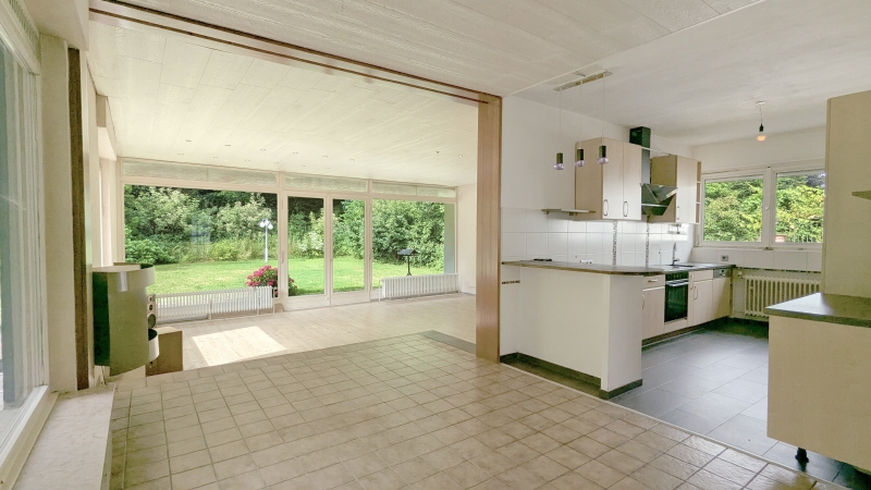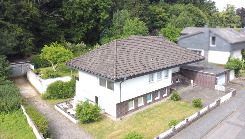 Sie haben näheres Interesse an der Immobilie und möchten gerne weitere Infos und einen Besichtigungstermin? Gerne lassen wir Ihnen auf Anfrage das Exposé sowie den Link zur virtuellen 360° Besichtigung zukommen, bei der Sie schon vor einem persönlichen Ortstermin ganz komfortabel von Zuhause aus einen vollumfänglichen Eindruck der Immobilie erhalten. Einen persönlichen Termin vor Ort vereinbaren wir gerne anschließend mit Ihnen! Das Einfamilienhaus mit Einliegerwohnung befindet sich zentrumsnah in einer ruhigen, gewachsenen Wohnsiedlung in unmittelbarer Nähe des Kurparks von Hennef-Geistingen und findet seinen Ursprung im Jahre 1964, als es in massiver Bauweise auf dem ca. 1571 m² großen Grundstück errichtet wurde. Großzügig verteilen sich rund 177 m² Gesamtwohnfläche auf das "Haupthaus" mit etwa 125 m² sowie der Einliegerwohnung mit ca. 52 m². Das Haus wurde in der Vergangenheit immer wieder instandgehalten und stellenweise modernisiert. So wurde beispielsweise 2009 eine moderne Wärmepumpenheizung installiert, die bei Bedarf durch die nach vor intakte Öl-Heizung unterstützt werden kann. Auch wurde die Elektroinstallation in jüngerer Vergangenheit stellenweise modernisiert sowie die Dachfläche gedämmt. Größtenteils bringt das Haus jedoch noch Möglichkeiten zur Umsetzung eigener Ideen mit sich und kann nach umfangreichen Modernisierungsarbeiten schon bald wieder im modernem Glanze erstrahlen und Ihr neues Zuhause werden! Über die frontseitige Außentreppe erreichen Sie den Zugang des Haupthauses, über den Sie geradewegs in den Eingangsflur gelangen, aus dem sich alle Bereiche erschließen. Mittelpunkt ist der ca. 60 m² riesige Wohn- und Essbereich von dem aus Sie Zugang auf einen überdachten Freisitz und die Terrasse haben. Highlight ist nicht nur der Blick, sondern auch der Zugang zum großen, nach Süd-Westen ausgerichteten, Garten. Die offen gestaltete Küche schließt sich dem Wohn-/Essbereich an. Den privaten Bereich erreichen Sie vom Hauseingang aus über einen separaten Flur. Hier befinden sich die insgesamt drei Schlafräume, wobei das Elternschlafzimmer über ein En-Suite-Wannenbad mit Fenster verfügt und ebenfalls Zugang zum Außenbereich bzw. zur großen Terrasse bietet. Für die weiteren Familienmitglieder gibt es sowohl ein Duschbad, als auch ein separates WC. Die gut geschnittene Einliegerwohnung, die derzeit ungekündigt zu einer monatlichen Kaltmiete von 500,- € zzgl. Betriebskosten an einen alleinstehenden Herrn vermietet ist, befindet sich im Souterrain und ist über einen eigenen Eingang erreichbar. Vom Eingangsflur mit Garderobenmöglichkeit aus gehen alle Räume ab. Die Wohnung verfügt über ein Wohn-, sowie ein Schlafzimmer, eine geräumige Küche, ein Duschbad mit Fenster sowie ein separates WC. Im praktischen Abstellraum sind Alltagsgegenstände wie Staubsauger oder Bügelbrett und auch Vorräte gut untergebracht. Vom Wohnzimmer aus erreichbar befindet sich eine großzügige Terrasse. Für Ihre PKW stehen einerseits zwei Einzelgaragen (eine davon mit ca. 5m Breite), andererseits verschiedene Außenstellplätze in der Einfahrt bereit.