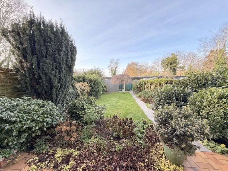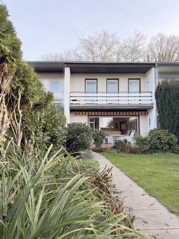 Das voll unterkellerte Flachdach-Reihenmittelhaus befindet sich entlang eines Anwohnerfußwegs und wurde ungefähr im Jahre 1968 auf dem rund 200 m² großen Grundstück in massiver Bauweise errichtet. Rund 100 m² Wohnfläche teilen sich auf vier Räume, verteilt auf zwei Wohnebenen, auf. Bereits 2007 wurde im Haus eine neue Gas-Heizung der Firma Viessmann verbaut, sowie in den 90er Jahren das Badezimmer modernisiert. Weitergehend erfreut sich Haus über eine "Rundum-Erneuerung", um in Kürze im komplett modernen Stil bewohnt zu werden. Derzeit wird die Immobilie noch durch die Eigentümerfamilie genutzt, kann aber durch den Käufer kurzfristig und geräumt übernommen werden. Aus der Eingangsdiele mit Garderoben-Nische heraus gelangen Sie ins, mit Parkett ausgestattete, Wohn- und Esszimmer. Neben einer großen Fensterfront und ausreichender Fläche für Ihr Wohnmobiliar und einen Esstisch, haben Sie vor allem auch Zugang zum großen und schön angelegten Terrassen- und Gartenbereich mit Gerätehäuschen. Durch die Süd-/Westausrichtung genießen Sie hier Sonnenstunden bis zum Abend. Eine Durchreiche verbindet den Essplatz clever mit der angrenzenden Küche. Das hell geflieste Gäste-WC komplettiert die Etage. Im Obergeschoss stehen Ihnen neben dem Elternschlafzimmer mit Zugang zum Balkon, auch das hell geflieste, bereits modernisierte Tageslichtbad mit Badewanne und Dusche, sowie zwei weitere Räume - einer davon mit einem zweiten Zugang zum Balkon - bereit. Egal ob als Kinder-, Arbeits-, oder Gästezimmer. Im Übrigen wurden einige (Einbau-)Möbel in der Diele, dem Esszimmer sowie in einem der Kinderzimmer durch einen Schreiner maßangefertigt. Der Keller bietet neben den klassischen Funktions-/Lagerräumen wie die Waschküche, den Hausanschluss- und den separaten Heizungsraum, vor allem noch einen großen Raum mit Zugang in den Garten. Für Ihren PKW steht ein Stellplatz in einer nahgelegenen Tiefgarage bereit (39,- € /Monat Hausgeld). Weitere Parkmöglichkeiten, z.B. für Besuch oder weitere eigene Fahrzeuge, stehen im öffentlichen Bereich in Hausnähe bereit.
