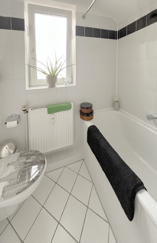 - Laminatboden in Wohnzimmer, Schlafzimmer und Flur - Fliesenboden in der Küche - hell gefliestes En-Suite-Tageslichtbad mit Badewanne - hell gefliestes Gäste-WC - Dachterrasse - Kellerraum - Duplexparkplatz - isolierverglaste Kunststofffenster