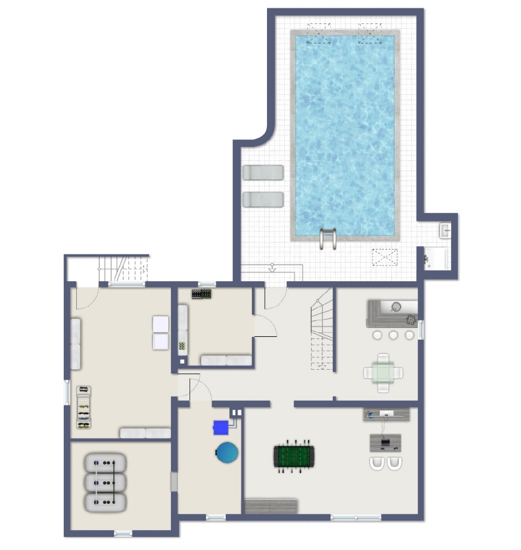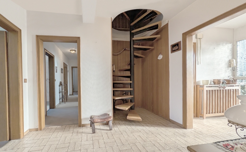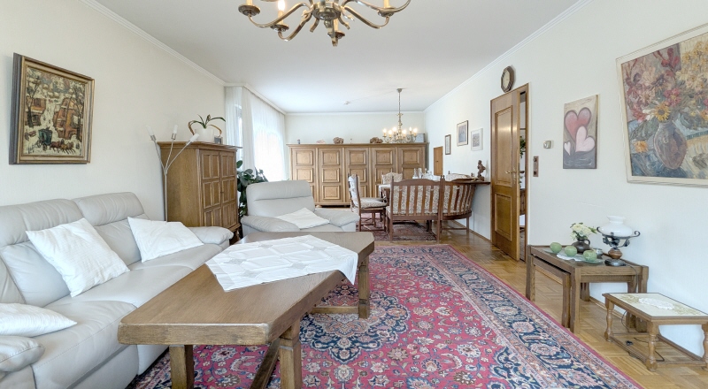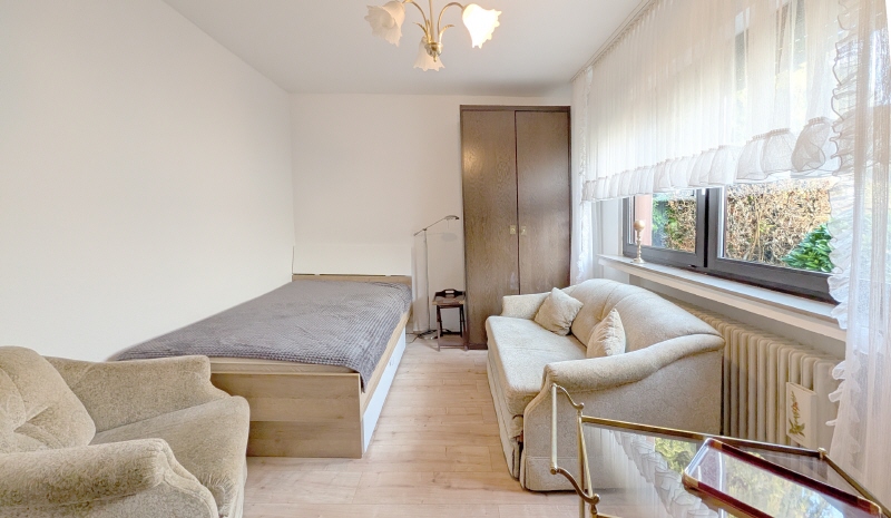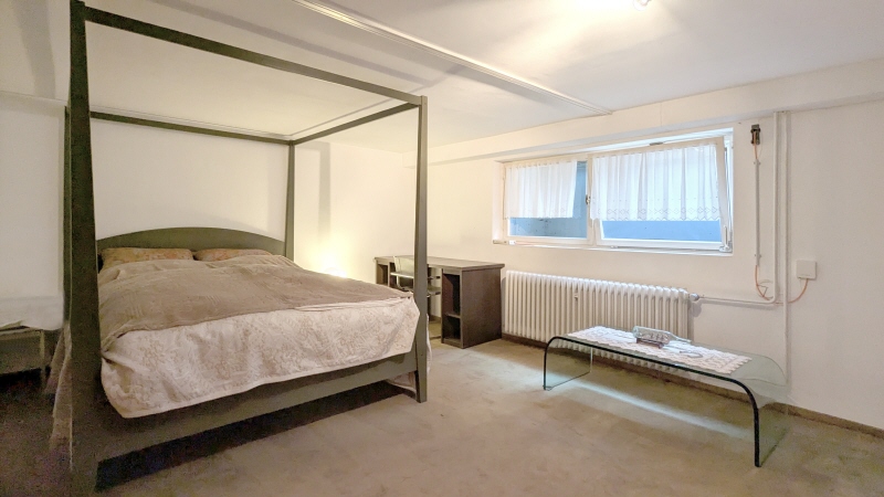 ....bietet mit einer Deckenhöhe von etwas über 2m viele Nutzungsmöglichkeiten. Neben den klassischen Funktionsbereichen wie dem Heizungs- oder Waschraum mit Gartenzugang, sowie verschiedenen Lagerbereichen, stehen hier eine urige Kellerbar sowie ein großer, beheizbarer Hobbyraum mit Tageslicht bereit. Absolute Besonderheit ist das ca. 1980 unterhalb des Gartens an den Keller angebaute Schwimmbad mit Dusche und zwei großen Lichtkuppeln, das mit über 60 m² Raumfläche und einer Deckenhöhe von rund 2,20m aufwartet. Nach einer notwendigen Sanierung des Beckens und der Außenmauern können Sie bald schon wieder Poolpartys feiern. Eine alternative Nutzung ist auch als Hobby- oder Fitnessraum denkbar. Weitere Lagernutzfläche bietet der, über eine Wendeltreppe im Hauseingang erreichbare, Dachboden, der in der Vergangenheit teilweise wohnlich mit erneuerten Dachflächenfenstern ausgebaut wurde. Für Ihre Fahrzeuge steht einerseits eine Einzelgarage direkt am Haus bereit, andererseits bietet die Einfahrt Platz für ein weiteres Fahrzeug. Ausstattung: - Einzelgarage mit Außenstellplatz in der Einfahrt - großer Vorgarten (Südseite) - großer rückwärtiger Garten mit Freisitz & Seitenterrasse - großzügige Kellernutzfläche (teils beheizbar) - wetere Nutzfläche im Dachboden - riesige Schwimmhalle im Keller - Parkettboden im Wohn- & Esszimmer - doppelverglaste Fenster im Holzrahmen im EG (Bj. 1982) - Außenrollladen im Erdgeschoss - Tageslichtbad mit ebenerdiger Dusche & Waschmaschinenanschluss - separates Gäste-WC - Öl-Zentralheizung mit Warmwasserspeicher (Buderus, Bj. 1989)