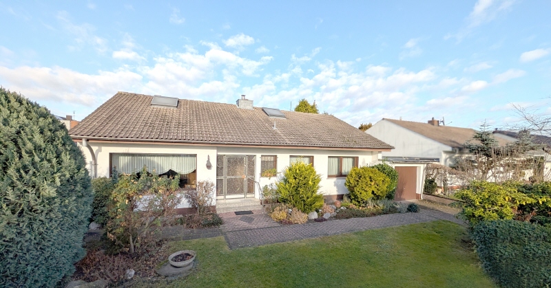 Dieser freistehende und voll unterkellerte Satteldach-Bungalow - ca. 1968 auf dem rund 616 m² großen Grundstück errichtet - befindet sich in familienfreundlicher Einfamilienhauslage von Lülsdorf, dessen Eingang barrierearm über lediglich zwei Stufen zu erreichen ist. Durch eine rundläufige Hecke wenig einsehbar, verteilt sich das Grundstück sowohl auf den großen Vorgarten, als auch in den ebenso großen rückwärtigen Garten. Das Haus präsentiert sich im sehr gepflegten, größtenteils baujahrestypischen Zustand und kann daher nach einer umfangreichen Modernisierung schon in Kürze Ihr neues Zuhause werden - Handwerkliches Geschick von Vorteil! Rund 114 m² Wohnfläche verteilen sich vollständig auf eine Ebene. Das rund 37 m² große Wohn- und Esszimmer besticht nicht nur durch seine sinnvolle Aufteilung in zwei Teilbereiche und den Zugang zur Terrasse und zum Garten, sondern vor allem auch durch die zweiseitigen großen Fensterflächen, über die besonders viel Tageslicht hereinfällt. Zudem wurde in der Vergangenheit bereits die westliche Außenwand gedämmt. Die gleich an den Essbereich angrenzende Küche ist clever mit dem Essbereich über eine Durchreiche verbunden und bietet gleichermaßen einen weiteren Zugang zum Garten. Hier warten nicht nur eine große Wiesenfläche, Sträucher und Hecken, sondern auch ein Freisitz mit einem gemauerten Grill für schöne Tage und Abende mit Familie und Freunden. Neben einem separaten Gäste-WC und dem Tageslichtbad mit ebenerdiger Dusche und Waschmaschinenanschluss, stehen darüber hinaus ein ca. 16 m² großes Elternschlafzimmer sowie zwei weitere Räume zur Verfügung, die sich perfekt als Kinderzimmer oder/oder Home-Office eignen - Ganz nach Ihren Bedürfnissen. Das Haus ist - typisch für einen Bungalow - großzügig unterkellert und......
