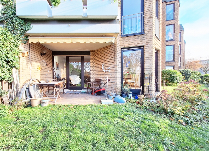 - Westterrasse mit Eheinblick und kleinem Garten - Erker im Wohnzimmer - Einbauschränke im Flur - isolierverglaste Holzfenster - Kellerraum - Tiefgaragenstellplatz